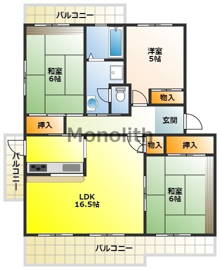 LDK 16.5帖 1室/和室 6.0帖 2室/洋室 5.0帖 1室
