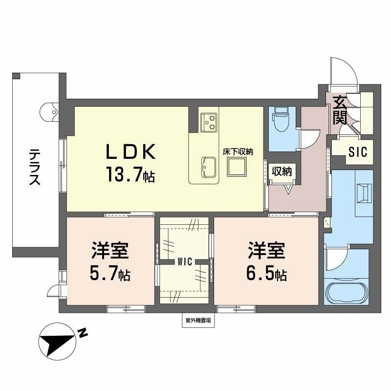 LDK 13.7帖 1室/洋室 5.5帖 1室/洋室 5.7帖 1室 - 向き