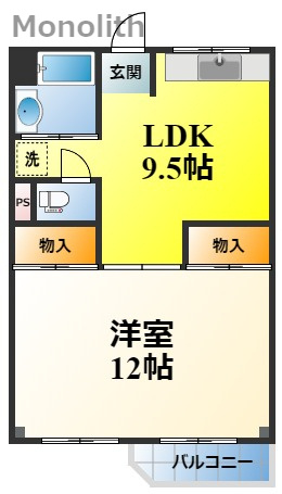 LDK 9.5帖 1室/洋室 12.0帖 1室 - 向き